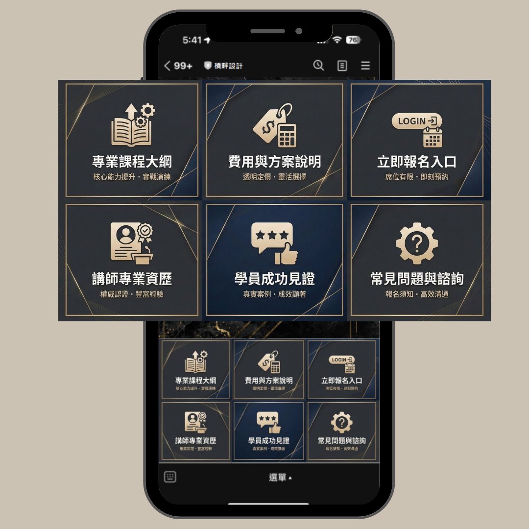 設計「名片式選單」,一次整合個人介紹、課程大綱與諮詢入口。